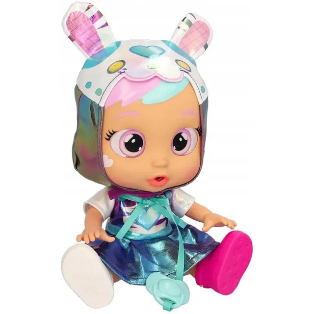 أصبحت دموع الأطفال أكثر متعة الآن! تعرّفوا على النجمة الجديدة في -أطفال الدموع-، جين من -كوكب الدموع-. ترتدي زيًا مميزًا بألوان قوس قزح! وجهها أكثر نعومة وعيونها البنفسجية واسعة. ومثل جميع الأطفال الباكيين، تبكي جين دموعًا حقيقية عندما لا يكون معها مصاصة، وتضيء النجوم أمام عينيها في كل مرة تبكي فيها! أعدوا لها المصاصة وستتوقف عن البكاء. الآن، تتضمن المجموعة أيضًا زجاجة رضاعة لتهدئة الدمية بسهولة!