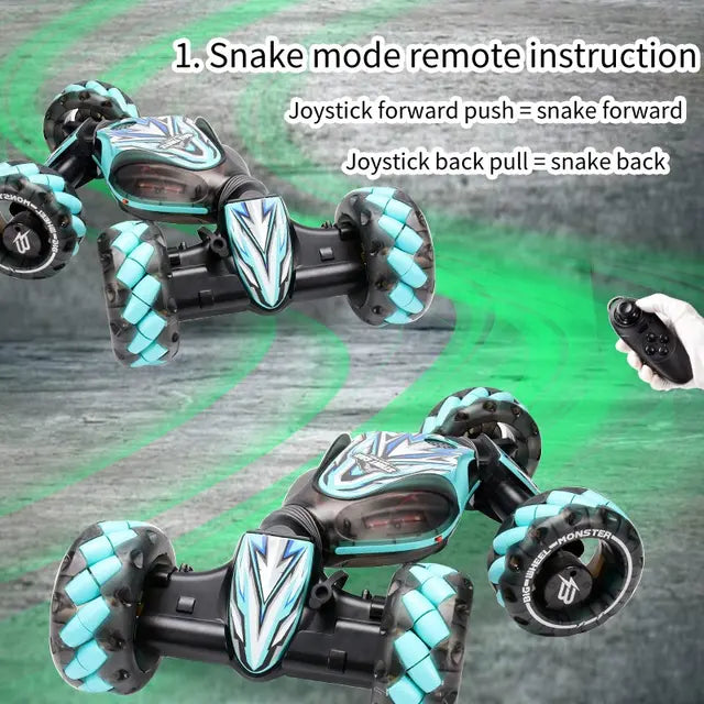 - سيارة سباق مع جهاز تحكم عن بعد. - وضع التحكم الذكي عن بعد: يعتمد جهاز التحكم عن بعد على تقنية نقل 2.4 جيجا هرتز، وهي حساسة للتحكم والتحكم في المسافة الطويلة للغاية. وساعة أخرى مذهلة للتحكم عن بعد. ارتدي الساعة في يدك، وغير وضعك، والسيارة القابلة للتشوه يمكن أن يشعر بتغييرات وضعك، والقيادة والتغيير حسب الرغبة. - إطارات متعددة الأسطوانات للطرق الوعرة: هذه الشاحنة الوحشية ذات الدفع الرباعي RC مجهزة بإطارات جر دوارة فريدة من نوعها. يتعامل وضع الطرق الوعرة مع أي تضاريس - الرمال والعشب والأوساخ والصخور والمزيد. - يمكن للسيارة عن بعد بمقياس 1:12 التحرك في جميع الاتجاهات، ويمكنها الدوران 360 درجة والقيادة على الوجهين، كما أن سيارة التسلق المثيرة ذات الدفع الرباعي لها تأثيرات ضوئية وموسيقى ويمكنها السفر على كلا الجانبين. - السيارة مجهزة ببطارية 3.7 فولت (1300 مللي أمبير) قابلة لإعادة الشحن. - بطارية طاقة عالية السعة وعالية السرعة لمتانة طويلة الأمد. 50-60 دقيقة من الاستخدام بعد ساعتين من الشحن. - يستخدم جهاز التحكم عن بعد بطاريتين AA "1.5 فولت" (غير متضمنتين).