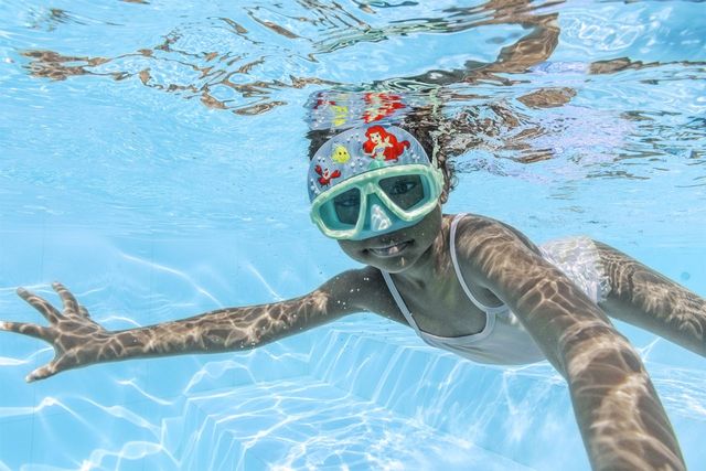 نظارات سباحة بتصميم رائع وجذاب للأطفال. - عدسات من البولي كربونات . - خالية من اللاتكس. - حماية من الأشعة فوق البنفسجية . - مناسبة للأعمار من سن 3+ سنوات وما فوق .