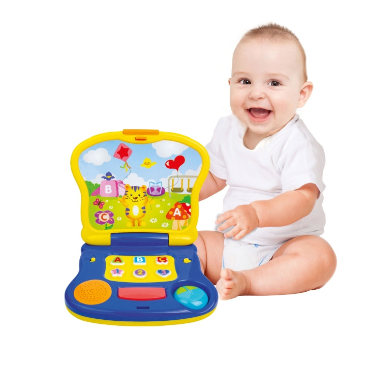 كمبيوتر محمول ذو طابع نمر مع مفاهيم التعلم المبكر كمبيوتر محمول لطيف بشاشة سحرية 2 طرق اللعب: تعليم ABC ، 123 والأشكال يلعب شريط فضاء الموسيقى ألحانًا مبهجة النقر بالماوس مثل فأرة الكمبيوتر الحقيقي