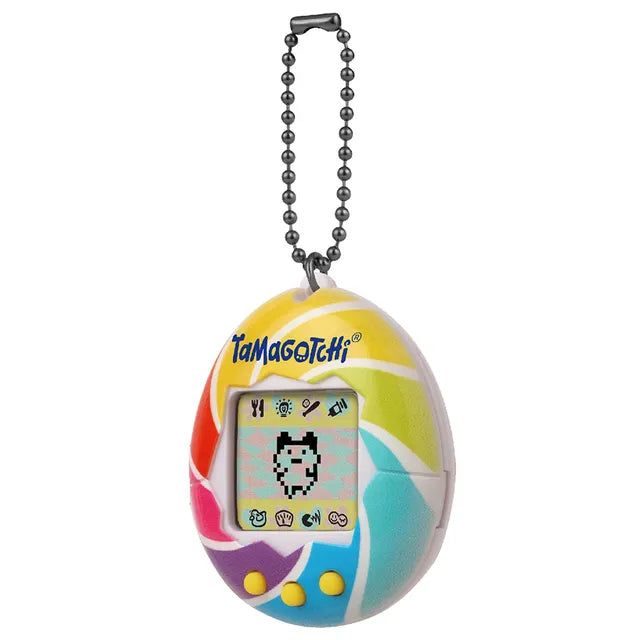 لقد عاد الحيوان الأليف الرقمي الأصلي الذي أحببته في عام 1997 في غلاف، Candy Swirl! مع برمجة الجيل الأول الأصلي، يمكنك إطعامه، وتنظيفه، والاعتناء به، بل وتأديبه إذا كان يزعجك عندما لا يحتاج إليك! بالإضافة إلى ذلك، يمكنك لعب لعبة الشخصيات! إن الطريقة التي تعتني بها بـ Tamagotchi الخاص بك وكيف تفعل في اللعبة، تحدد نوع Tamagotchi البالغ الذي ستحصل عليه! تتضمن بطارية CR2032 ويمكن ربطها بحقيبتك حتى تتمكن من حملها في كل مكان!