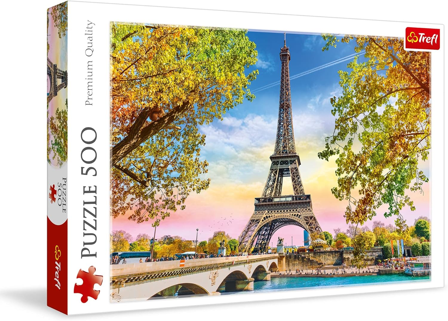 بازل بمنظر خريفي ساحر لمدينة باريس يتوسطه برج إيفل مع نهر السين وألوان أشجار الخريف الدافئة. صورة واضحة بتفاصيل دقيقة تمنح تجربة تركيب ممتعة ومتوازنة. جودة تصنيع عالية من شركة Trefl.