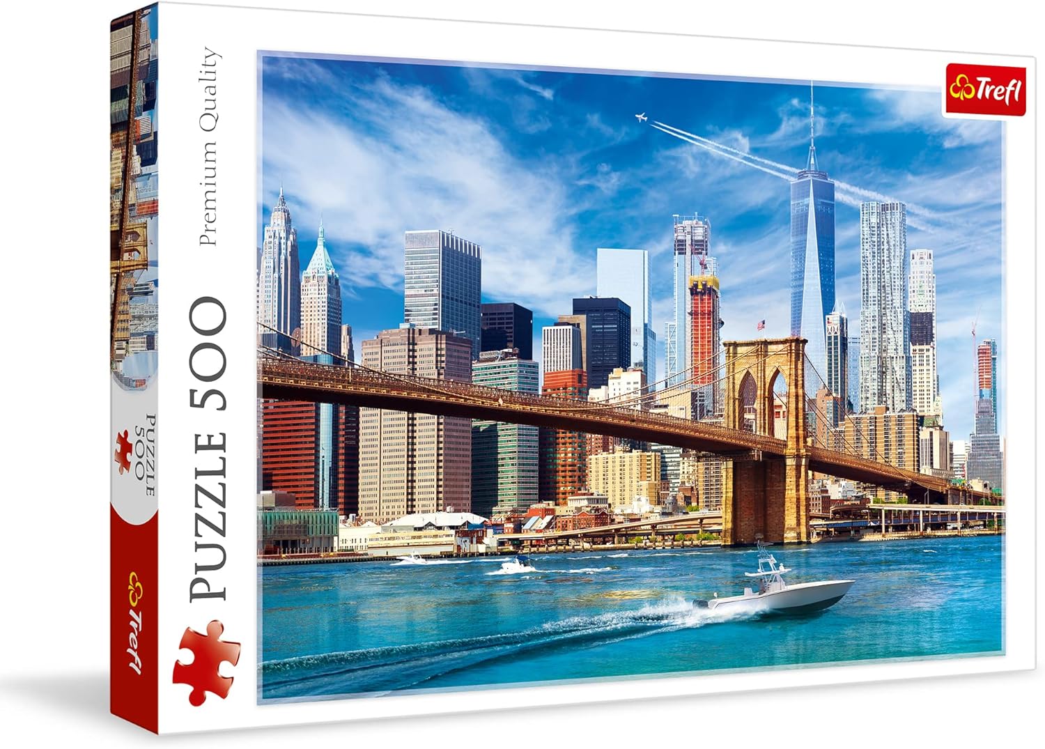 بازل بمنظر بانورامي مميز لمدينة نيويورك يظهر جسر بروكلين مع أفق مانهاتن وناطحات السحاب الحديثة. ألوان زاهية وتفاصيل دقيقة تمنح تجربة تركيب ممتعة ومناسبة لمحبي المدن العالمية. صناعة عالية الجودة من شركة Trefl.