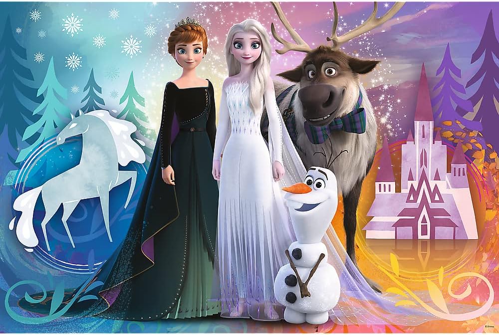 بازل أطفال مستوحى من فيلم Frozen، يحتوي على 24 قطعة بحجم Super Maxi الكبير، مزدوج الوجهين (صورتان مختلفتان في بازل واحد). يضم شخصيات إلسا وآنا وأولاف وسفين، من إنتاج Trefl بجودة عالية وألوان واضحة، ويساعد على تنمية التركيز والمهارات الحركية. مناسب للأطفال من عمر 3 سنوات فأكثر.