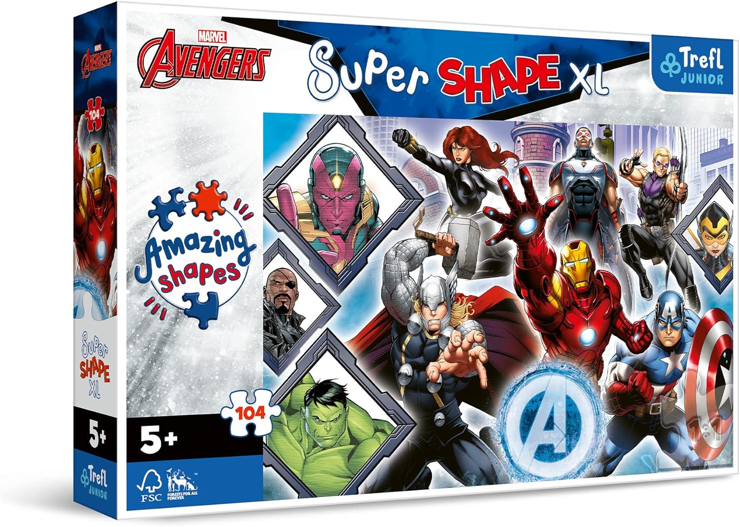 بازل ممتع بتصميم Marvel Avengers وأشكال غير تقليدية (Super Shape XL) مخصص للأطفال. يتكوّن من 104 قطعة كبيرة وسهلة التركيب، يساعد على تنمية التركيز، التناسق بين العين واليد، والقدرة على حل المشكلات، مع شخصيات أفنجرز المحبوبة مثل آيرون مان، كابتن أمريكا، ثور، وهالك.