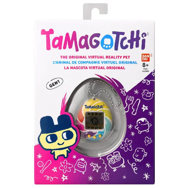 لقد عاد الحيوان الأليف الرقمي الأصلي الذي أحببته في عام 1997 في غلاف، Candy Swirl! مع برمجة الجيل الأول الأصلي، يمكنك إطعامه، وتنظيفه، والاعتناء به، بل وتأديبه إذا كان يزعجك عندما لا يحتاج إليك! بالإضافة إلى ذلك، يمكنك لعب لعبة الشخصيات! إن الطريقة التي تعتني بها بـ Tamagotchi الخاص بك وكيف تفعل في اللعبة، تحدد نوع Tamagotchi البالغ الذي ستحصل عليه! تتضمن بطارية CR2032 ويمكن ربطها بحقيبتك حتى تتمكن من حملها في كل مكان!