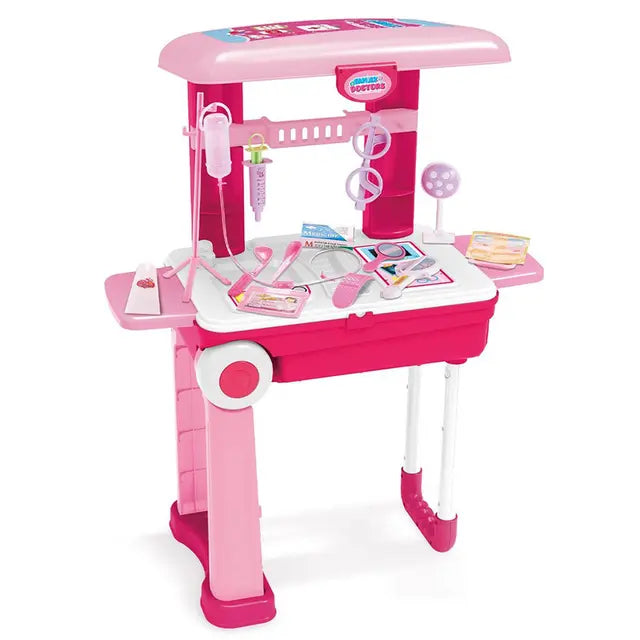 28 قطعة من الملحقات الطبية في حقيبة الأمتعة. - مصنوعة من مادة أيه بي أس غير ضارة وغير سامة وآمنة ودائمة. - عجلة دوارة ناعمة ، سهلة التجميع والسحب. - سطح أملس بدون نتوءات لضمان عدم خدش أصابع الأطفال. - الأبعاد: 24 × 14 × 52 سم. - العمر المناسب: 3 سنوات فما فوق.