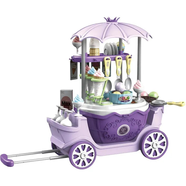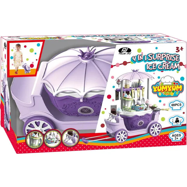 مجموعة ألعاب متجر الآيس كريم 4 في 1 من بريتيند بلاي للأطفال. 69 قطعة من الآيس كريم المفاجئ 4 في 1 مع سلة قابلة للإزالة وحقيبة حمل عربة للتخزين المحمول والمريح. مجموعة المطبخ الفائقة تحتوي على مجموعة الآيس كريم وغيرها من الملحقات. , , مجموعة المطبخ اللطيفة ذات الألوان الزاهية هي كل ما يحتاجه طفلك الصغير للاستمتاع بساعات غير محدودة من لعب الأدوار. مصنوعة من مادة أكريلونتريل بوتادين ستايرين غير الضارة، وغير سامة، وآمنة، ومتينة، وسطح أملس بدون نتوءات لضمان عدم خدش أصابع الأطفال. حجم كبير بطول 48 سم × عرض 18.5 سم × ارتفاع 39.5 سم وعجلة دوارة ناعمة، سهلة التجميع والسحب.