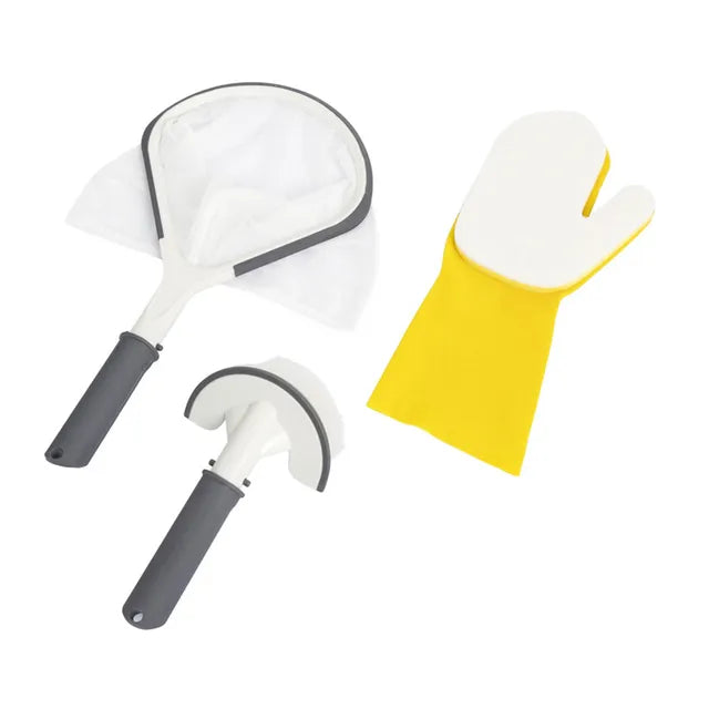 تحتوي مجموعة أدوات العناية بالمنتجع الصحي من بيست واي على كل ما تحتاجيه للحفاظ على نظافة المنتج الصخي الخاص بكِ. تحتوي على مغرفة مع ممتص صدمات يحمي السطح والهيكل ويتناسب مع التصميم الداخلي للمنتجع الصحي. يحتوي على شبك يساعد جمع الأوساخ ومكن حمله بشكل يدوي أو توصيله على عمود للوصول للأماكن البعيدة. تحتوي الفرشاة على شعيرات من النايلون توفر تنظيف آمنة وفعال. يمكن حمل الفرشاة يدويًا أو توصيلها بعمود. قفاز النظيف مصنوع من المطاط ويحتوي على قطعة قماش لفرك الأوساخ ولتجنب الاتصال بالمواد الكيميائية. مجموعة شاملة تحتوي على الأدوات الأساسية لتنظيف المسبح!