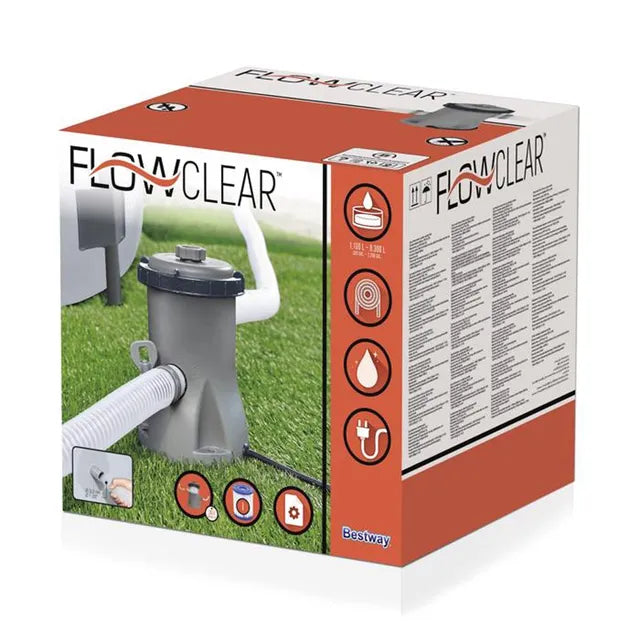 مضخة الفلترة من بيست واي بسعة 330 غالون/ 1,249 لتر هي ملحق أساسي للأشخاص الذين يريدون الحفاظ على نظافة المسبح طوال الصيف. تقوم مضخة الفلترة بتدوير المياه النظيفة عن طريق ضخها خارج المسبح من خلال خرطوشة فلترة قبل تفريغها في المسبح. مضخة من بيست واي تأتي مع خرطومين يمكن توصيلهما بسهولة في أي مكان. , , تتصل نهاية الأنابيب بمدخل مضخة الفلترة بينما يكون الأنبوب الآخر متصلاً بالمخرج. يتم ضخ الماء خارج المسبح من خلال خرطوم الإدخال قبل تنظيفه في خرطوشة الفلترة وإعادته للمسبح من خلال خرطوم المخرج. تعمل المضخة بشكل مستمر لتوفير مياه نظيفة وصحية ونقية. , , تأتي مضخة الفلترة فلوكلير 330 غالون من بيست واي مع دليل تركيب يدوي يعرفكِ على عملية الاعداد بسهولة. يوصى باستخدامه للمسابح بحجم 300-2,200 غالون/ 1100-8300 لتر.