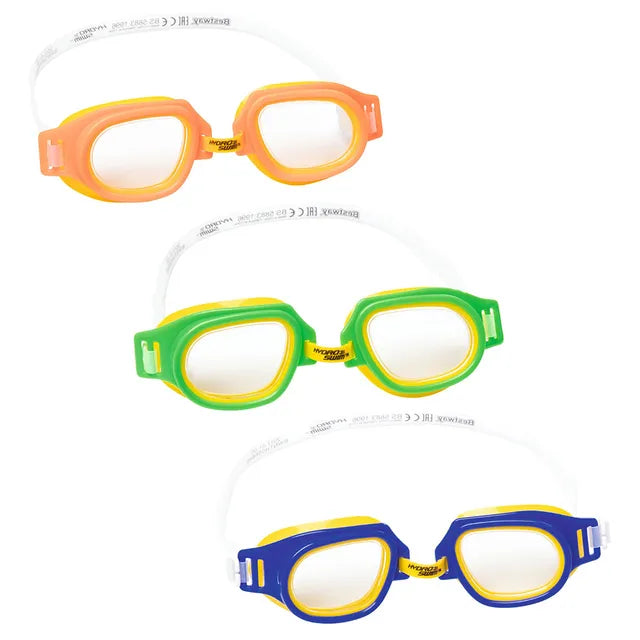 نظارة سباحة هايدرو توفر أفضل رؤية تحت الماء مع منحكِ راحة مثالية! هذه النظارات مطورة بحيث توفر للأطفال المزيد من المتعة في الماء. سواء كانوا يتعلمون السباحة فقط أو يريدون الغوص لجمع الكنوز من تحت الماء فإن هذه النظارات المريحة هي ملحق السباحة المثالي. الهيكل الناعم والختم المحكم ضد الماء يوفران ملاءمة مريحة لذا لن يتوقف الطفل عن اللعب تحت وفوق الماء. الختم المحكم للرأس القابل للتعديل يوفر ملاءمة مثالية لذا لن يتوقف الطفل عن اللعب تحت وفوق الماء. حزام رأس قابل للتعديل يجعل اللعب بالمسبح أكثر متعة وأسهل على الأطفال والأباء وتتميز بأن النظارة تبقى على حجمها الأصلي مع استخدامها.