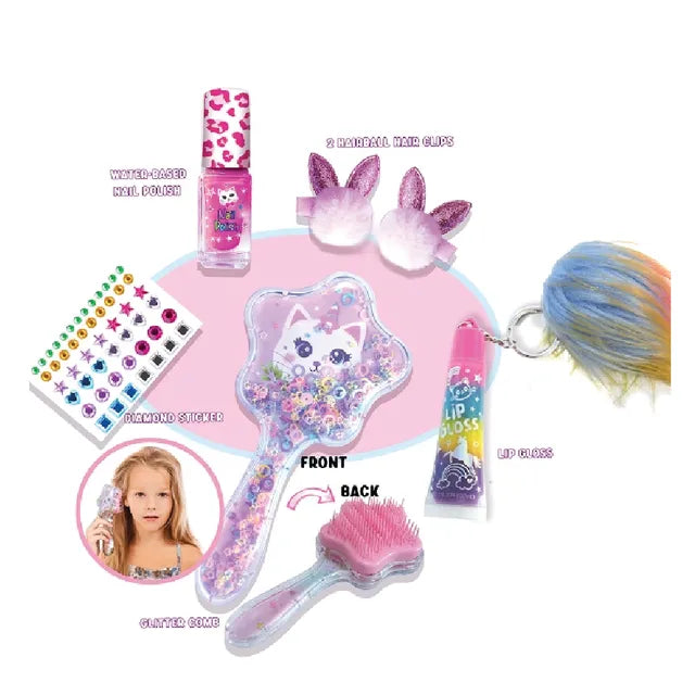 مجموعة مستحضرات تجميل للأطفال. المجموعة مصنوعة من مواد آمنة وغير سامة وتبقي الصغار منشغلين وتسليهم أثناء وقت اللعب. يمكن للأطفال المشاركة في حياة الكبار في سيناريوهات افتراضية. مجموعة اللعب والتظاهر هذه هي طريقة رائعة لمساعدة الأطفال على فهم عالمهم بشكل أفضل مع تطوير مهارات اللغة والمهارات الاجتماعية المبكرة.