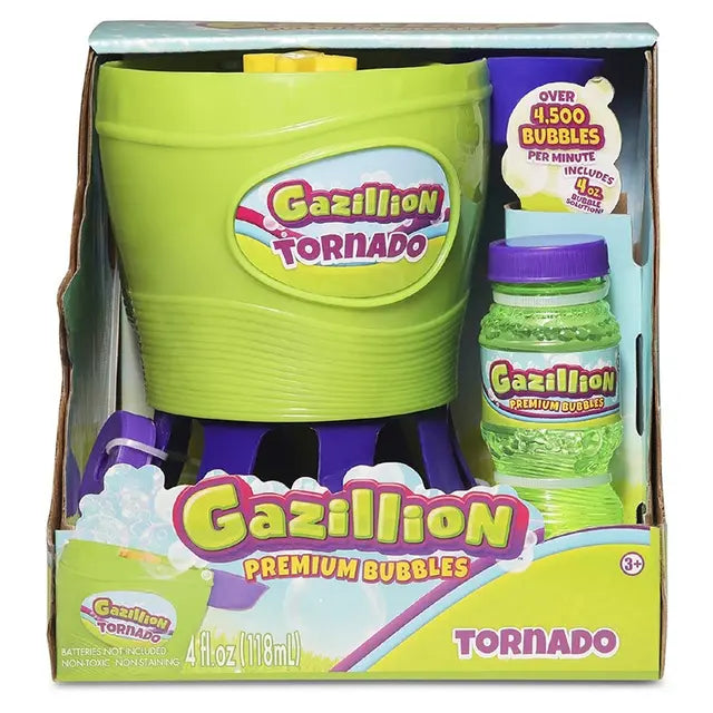 تعمل أداة صنع الفقاعات تورنادو على إطلاق سيل من الفقاعات بشكل مستقيم في الهواء! لا تحتاج إلى وقت انتظار أو ضخ لحركة الفقاعات. تتضمن عبوة بحجم 4 أوقية من محلول الفقاعات الغير سام غازيليون.