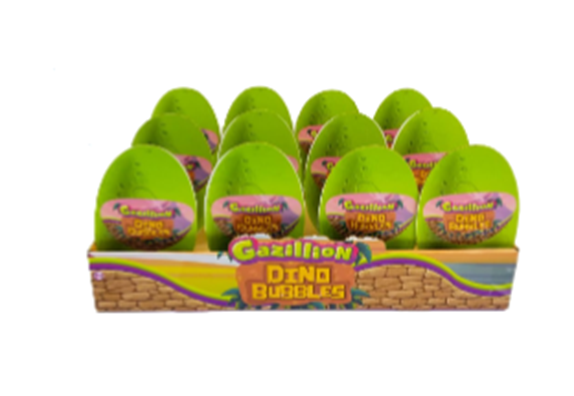 - يشتمل كل محلول بيض دينو سعة 8 أونصات على عصا فقاعية وتمثال ديناصور مفاجئ بالداخل. - يأتي محلول غازيليون بابلز الآن بتغليف على شكل بيضة ديناصور. - آمن وغير سام ولا يسبب تلطيخًا. - الفئة العمرية المناسبة: 3 سنوات فما فوق.