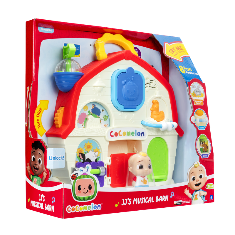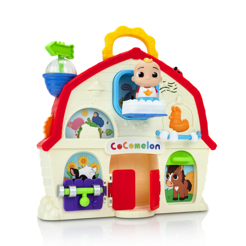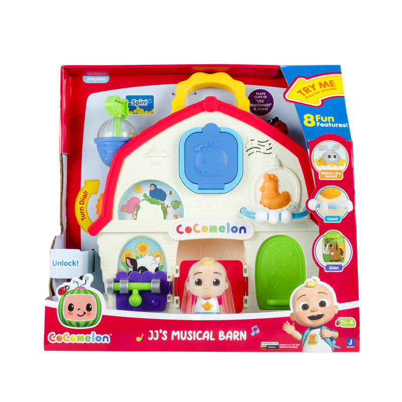 "استمتع بوقت لعب مليء بالمرح والتعلّم مع حظيرة كوكوميلون الموسيقية مع جيه جي 🎶🐑🐴. مستوحاة من العرض الشهير للأطفال CoComelon، تأتي هذه اللعبة المميزة مع دمية جيه جي صغيرة (2.5 بوصة) وحظيرة متنقلة بحجم 9 بوصات مجهزة بالعديد من المزايا التفاعلية. الأغاني والأصوات: اضغط على الدعسوقة لتشغيل المؤثرات الصوتية وسماع 3 مقاطع غنائية من الأغاني المفضلة لدى الأطفال، مثل: ""Old MacDonald"" ""Baa Baa Black Sheep"" وأغانٍ أخرى مشهورة من كوكوميلون. 8 مميزات حسية تفاعلية: افتح البوابة لاكتشاف البقرة 🐄. حرّك القرص لترى الخروف يتغير لونه 🐑. أدر السهم لمزج العلف 🌾. عدّ البيض الموجود 🥚. اسحب الباب لتشاهد الحصان 🐴. افتح الباب الجانبي لتجد الأرنب 🐇. اضغط على الدعسوقة لتشغيل الأغاني والأصوات."