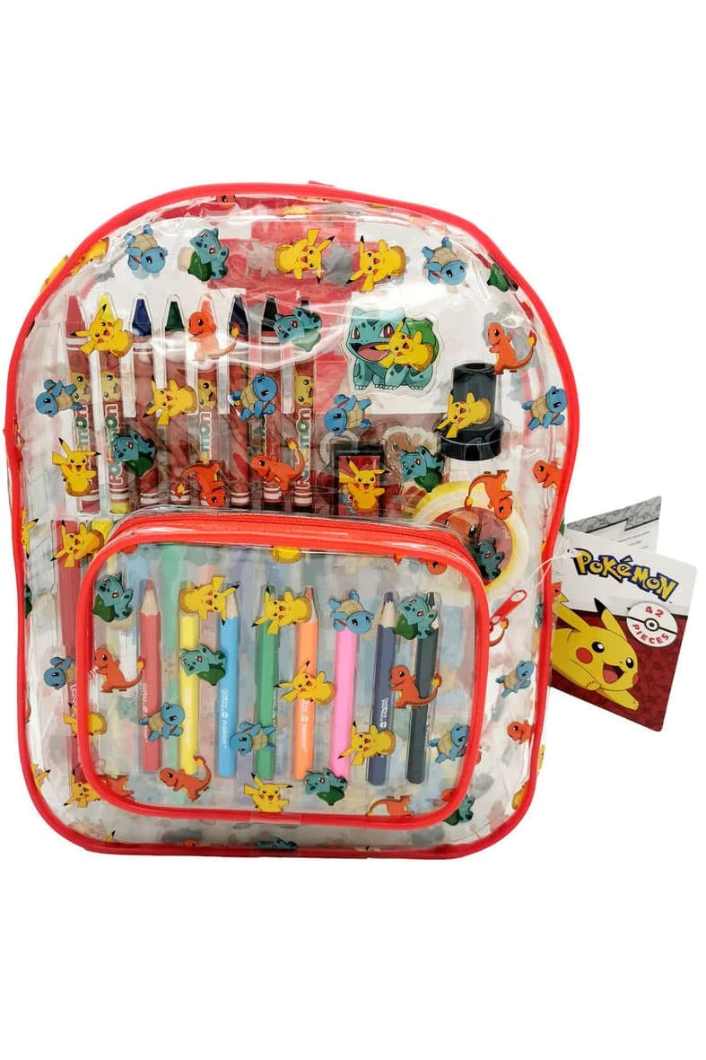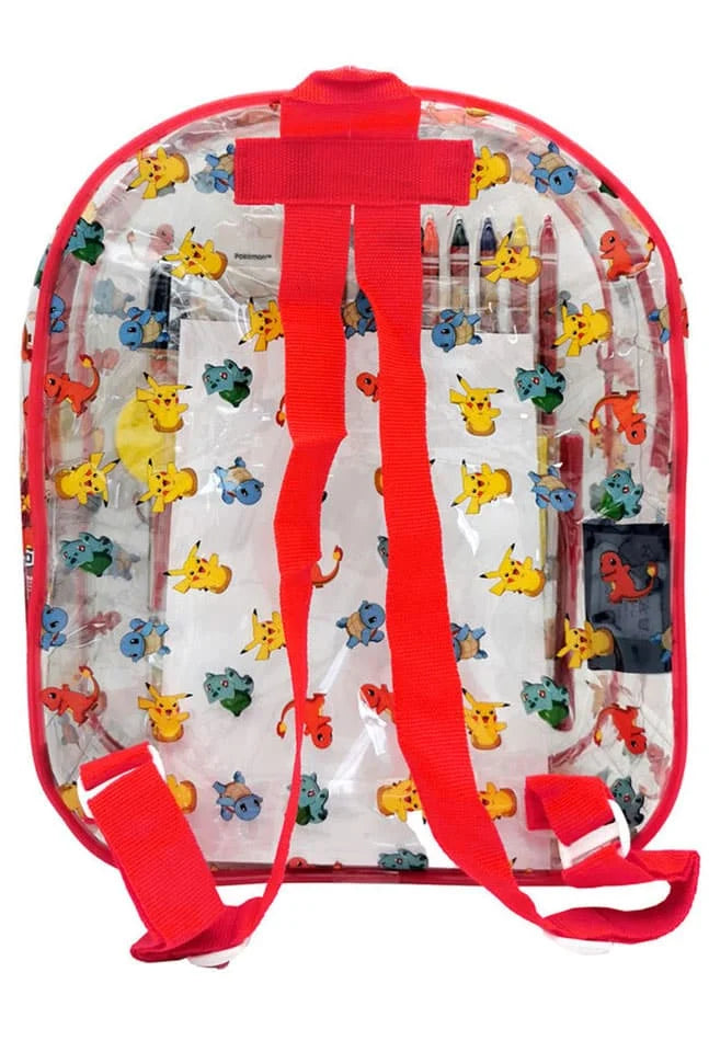 حقيبة تلوين شفافة للأطفال، مستوحاة من شخصيات بوكيمون المحبوبة. تحتوي على مجموعة متنوعة من أقلام التلوين وأدوات الرسم، تساعد على تنمية الإبداع والمهارات الحركية الدقيقة بطريقة ممتعة. تصميم عملي بسحاب وحجم مناسب للحمل، مثالية للاستخدام في المنزل أو أثناء الخروج.