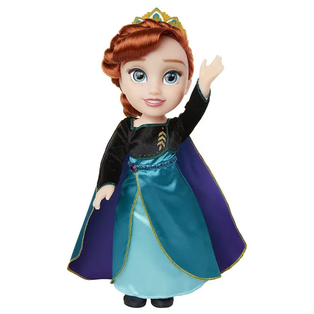 تستمر المغامرات في فيلم ديزني فروزن 2 الشهير والمحبوب! انضموا إلى أصدقائكم المحبوبين، آنا وإلسا وكريستوف وأولاف وسفين بينما يغامرون وراء بوابات أرندل لتقوية صداقتهم واكتشاف مغامرات جديدة ستغير حياتهم إلى الأبد. انضمي إلى آنا في بداية الفصل التالي من حياتها، كملكة أرينديل، مع دمية فروزن 2 آنا اللطيفة والشجاعة. ترتدي فستانها الأيقوني الفيروزي والأزرق المخضّر المستوحى من الفيلم، مع تفاصيل باللون الأسود، البنفسجي والذهبي، بالإضافة إلى رداء (كاب) وحزام مزيّن بالمجوهرات. كما ترتدي تاج مرّصع بالذهب بإشارة كروكوس، قمة أرينديل.