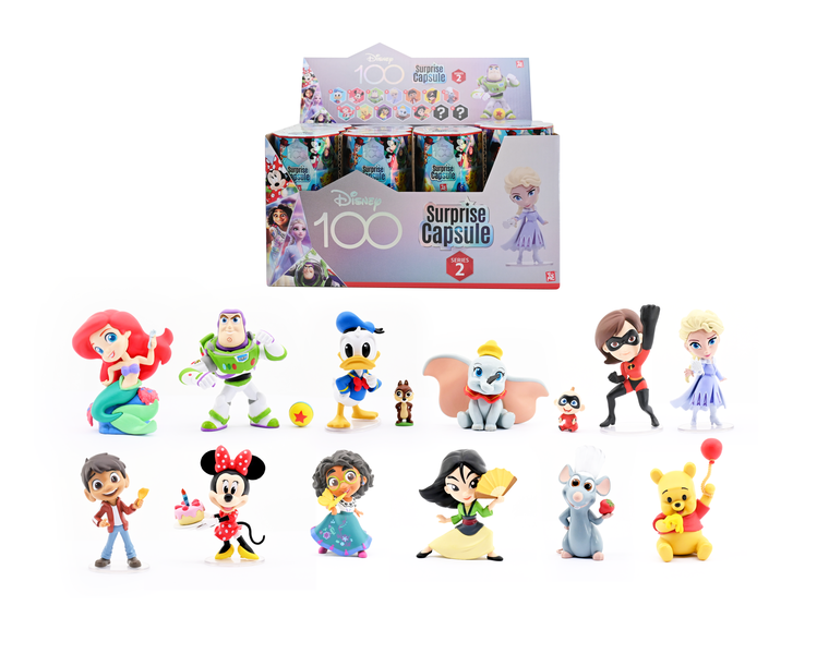 كبسولة المفاجآت المجهولة من ديزني D100 S2 نضم مجسمات جميلة مثل آريل وباز لايت يير، كوكو، دونالد داك، ميرابيل وعيرها. مع أكثر من 100 كبسولة للجمع، هناك خيارات غير محدودة. هل ستحصلين على شخصية نادرة أو عنصر خاص؟ الطريقة الوحيدة لمعرفة الأمر هي بدء جمع المجسمات!