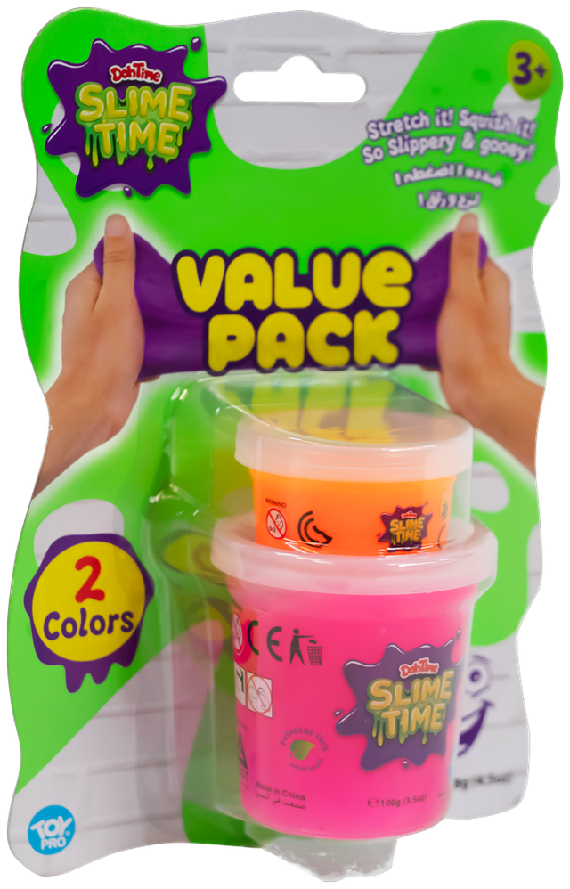 عبوتين من السلايم  سلايم عالي الجودة  مناسب للأطفال من سن 3 سنوات و أعلى  آمن على الطفل. يعزز الأبداع لدى الطفل.