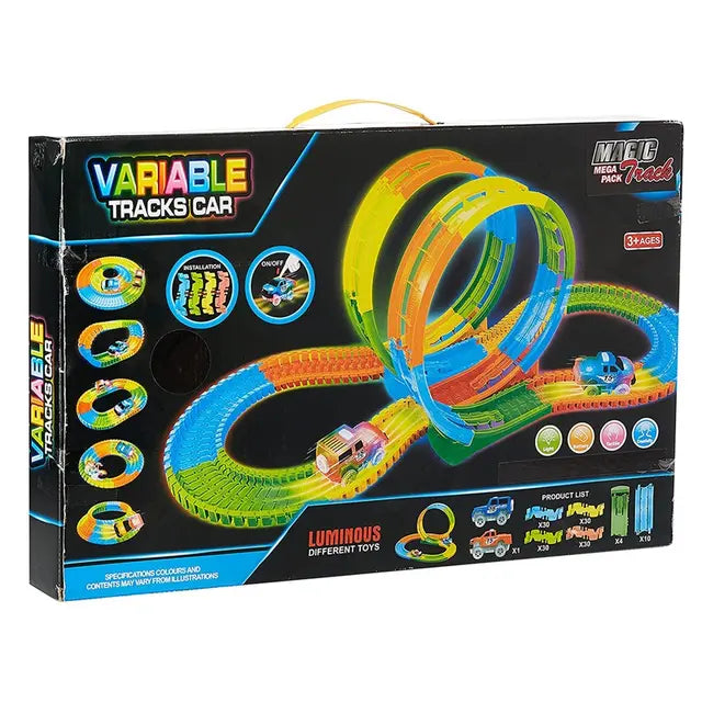 مسار سباق جديد رائع ينحني وينحني ويتوهج في الظلام. 142 قطعة كبيرة مسار بطول 16 قدم لمتعة لا نهاية لها، سيارة تعمل بالبطارية مع أضواء. 3 حلقات لمزيد من المرح عند السباق. العلامة التجارية: Power Joy