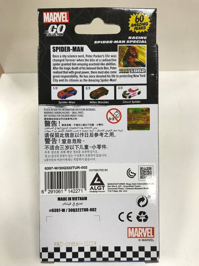 مجموعة من 3 سيارات لعبة دييكاست. - يشمل سيارة سبايدر مان , ميلز مورالس , جوست سبايدر . - مقياس 1:64. - مناسب للأعمار من سن 3+ سنوات وما فوق .