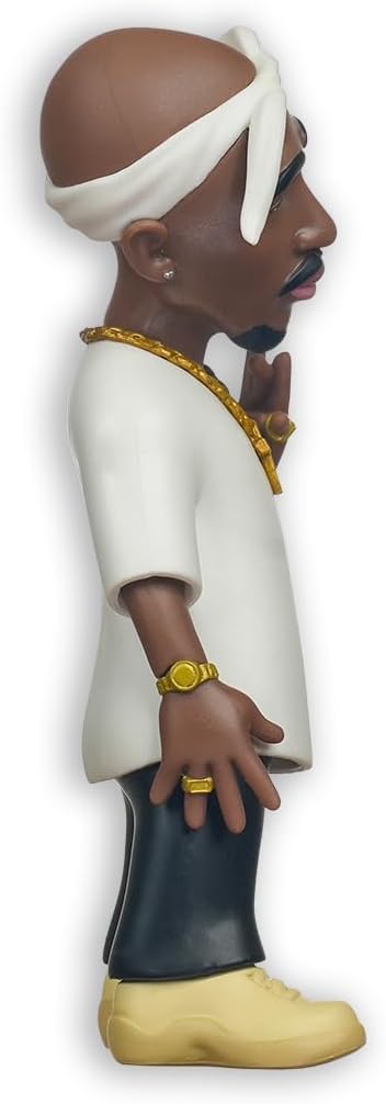 مجسم كرتوني مميز لشخصية توباك بتفاصيل دقيقة في الملامح والملابس، مع الباندانا البيضاء والسلسلة الذهبية والإطلالة المعروفة له.