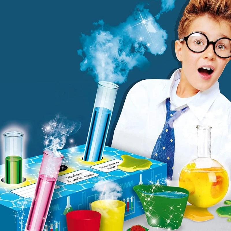 طقم ممتع لتعليم الأطفال أساسيات الكيمياء بطريقة بسيطة وآمنة. يحتوي على أدوات وتجهيزات لإجراء تجارب علمية ممتعة تساعد الطفل على فهم التفاعلات الكيميائية بشكل عملي.