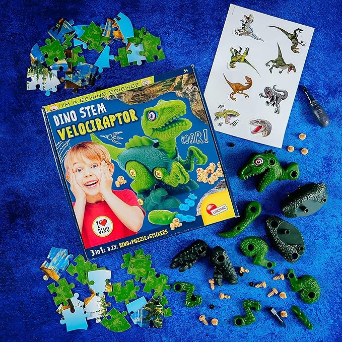 مجموعة تعليمية ممتعة لعشاق الديناصورات، تتيح للطفل تركيب مجسم ديناصور فيلوسيرابتور بنفسه بطريقة سهلة وآمنة.