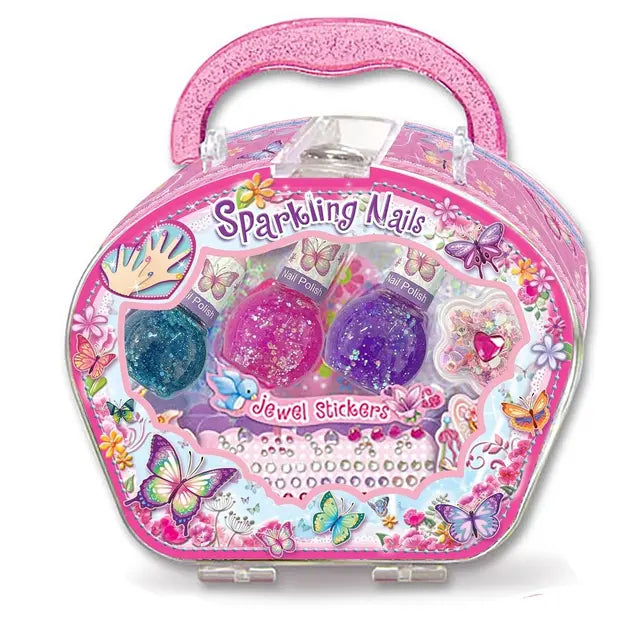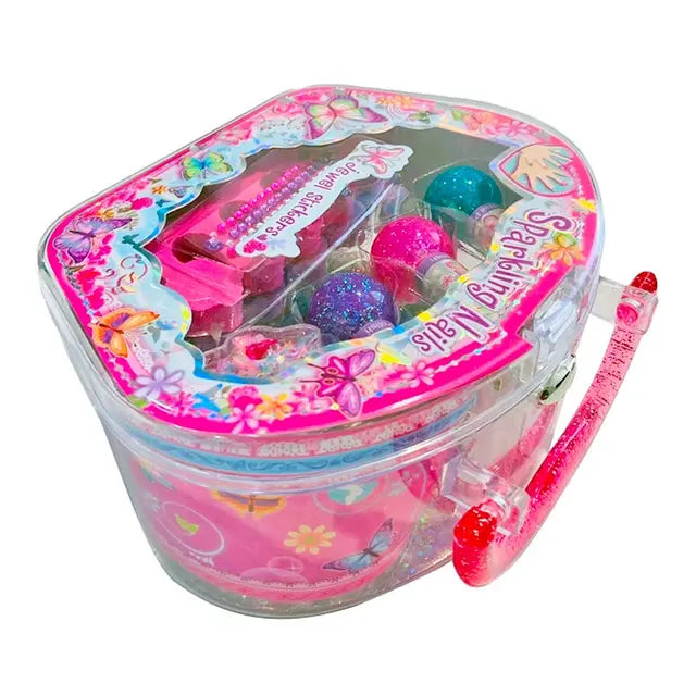 علبة تزيين الأظافر الجميلة. - ستحب الفتيات علبة التزيين هذه و ستقضي ساعات طويلة من المرح. - علبة بلاستكية بشكل حقيبة صغيرة بشباك تعرض مجموعة مختلفة من طلاء الأظافر و قطع الامع و جواهر لاصقة - متضمنة: 3 طلاء أظافر ، علبة لامع ، و جواهر لاصقة. - مناسبة للأعمار من 3+ سنوات فما فوق.