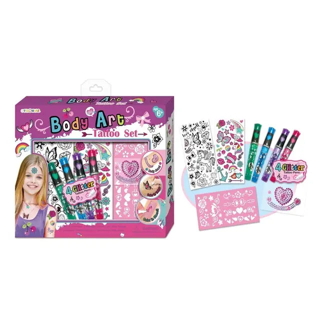 كل ما تحتاجه لإنشاء أسلوبك باستخدام التاتو اللامع الممتع. - تتضمن استنسل الوشم، وملمعات تجميلية ملونة. - مجموعة الوشم المؤقتة اللامعة هذه ستبقي أي فتاة مستمتعة لساعات.
