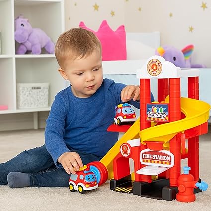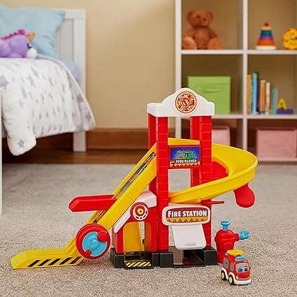 لعبة محطة إطفاء بتصميم ملون وجذاب تحتوي على برج متعدد المستويات مع منحدرات انزلاق تسمح للسيارة بالنزول بسرعة إلى الأسفل بطريقة ممتعة. تأتي مع سيارة إطفاء صغيرة وإكسسوارات تزيد من واقعية اللعب، مما يساعد الطفل على تخيل مواقف إنقاذ ممتعة. مناسبة للأطفال من عمر سنة إلى أربع سنوات، مصنوعة من خامات آمنة وحواف ناعمة، وتساعد على تنمية المهارات الحركية وتعزيز الخيال أثناء اللعب. هدية رائعة لعشاق سيارات الطوارئ الصغار.