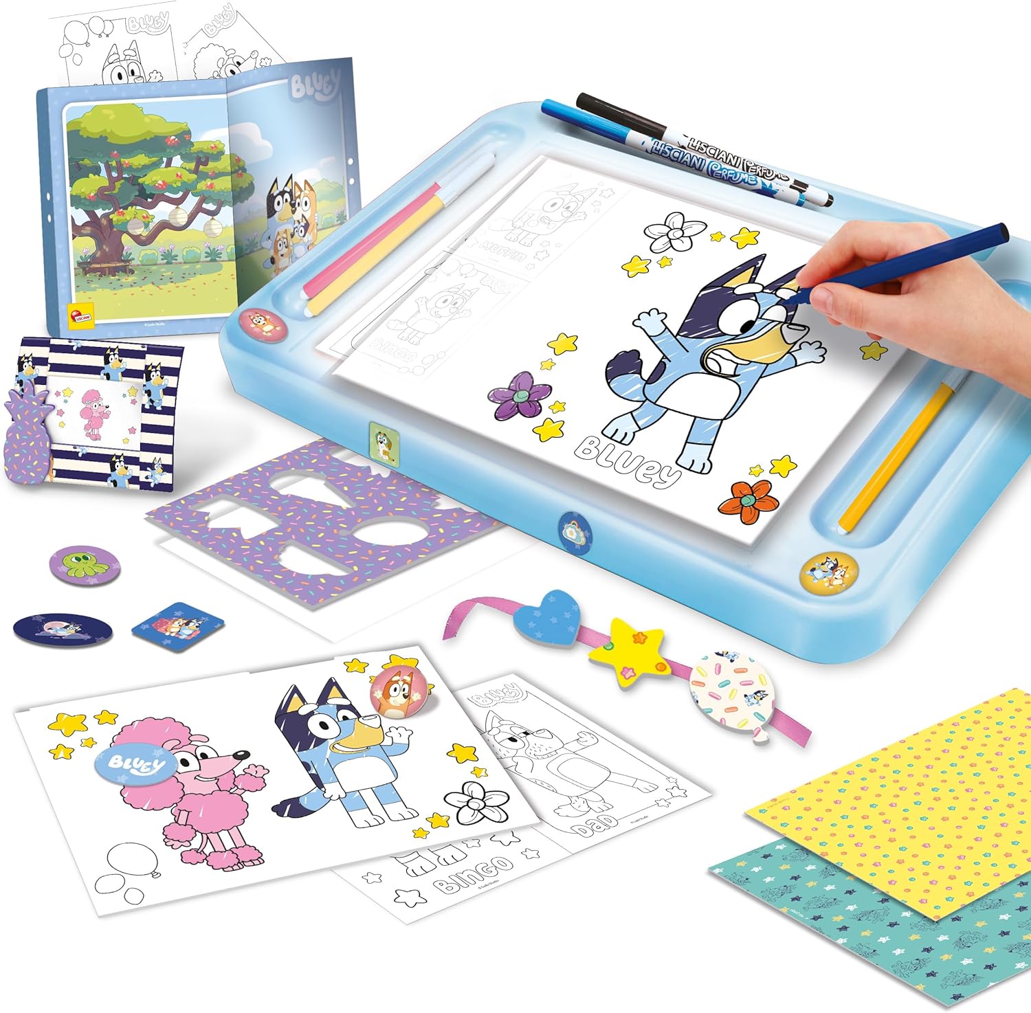 طاولة رسم مضيئة للأطفال من عمر 3 سنوات فأكثر، مستوحاة من شخصية بلووي المحبوبة. تساعد على تتبع الرسومات والتلوين بسهولة، وتضم أنشطة فنية متنوعة وأقلام تلوين معطرة لتنمية الإبداع والخيال والمهارات الحركية الدقيقة بطريقة ممتعة.