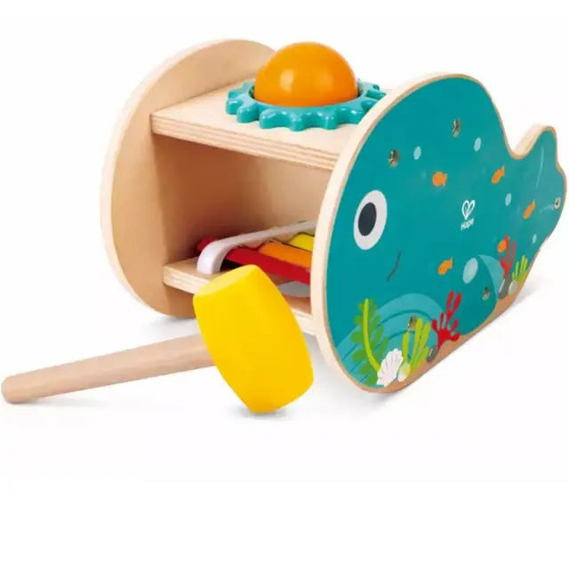 - يحتوي مقعد صنبور الحوت الرائع هذا على إكسيليفون صغير بداخله، لذا في كل مرة تضرب فيها الكرة عبر الفتحة، ستسمع صوت رنين موسيقي. - يتميز الحوت بتصميم محيطي لطيف. - المطرقة والكرة سهلة الإمساك للأصابع الصغيرة. - رائعة لتطوير المهارات الحركية الدقيقة والتركيز. - مثالية لمساعدة الأطفال على استكشاف الإدراك الإيقاعي. - العمر: 18+ شهرًا وما فوق.