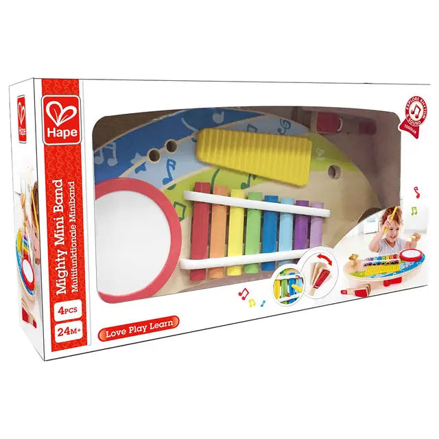 - مجموعة الفرقة الموسيقية المتكاملة تشمل اكسيليفون وطبل وصنج وأداة تصفيق وعصاتي طبل - يمكن للموسيقيين الصغار أن يبدأو في تطوير المهارات السمعية والإيقاعية - جميع الرسومات مطبوعة لزيادة المتانة وتسهيل المسح للتنظيف - تستخدم هيب لمسات نهائية غير سامة وآمنة على الأطفال بجودة عالية - سوف تشكلين فرقة من شخص واحد بواسطة هذه الطاولة الرائعة متعددة الآلات الموسيقية. تتضمن طبل - واكسيليفون وصنع ولوح خدش وأداة تصفيق وعصاتين.