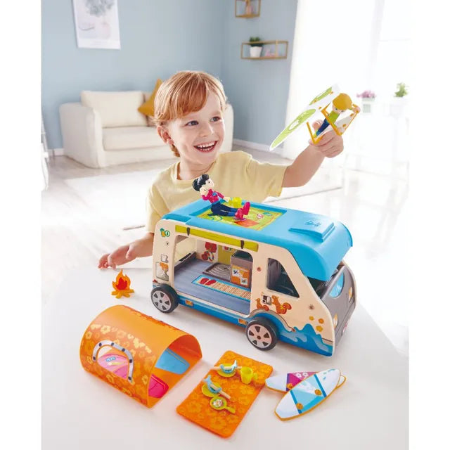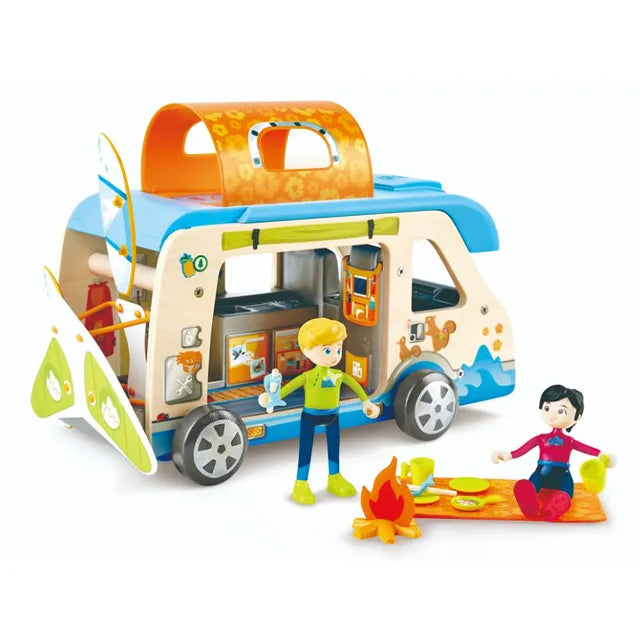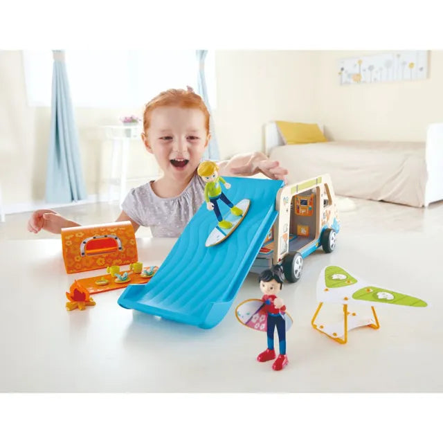 اجعل طفلك ينطلق بمغامرة تخييم مذهلة مع النزهات، وركوب الأمواج وحتى الانزلاق الشراعي مع مقطورة السفر الرائعة هذه التي يسهل حملها والمزودة بالدمى والإكسسوارات! هدية مثالية للأطفال الصغار من المؤكد أنها ستوفر ساعات من المرح.