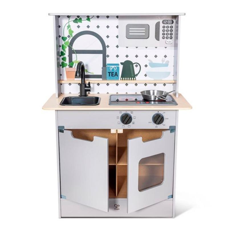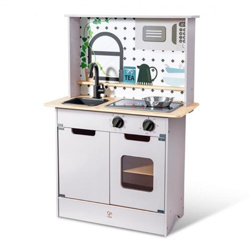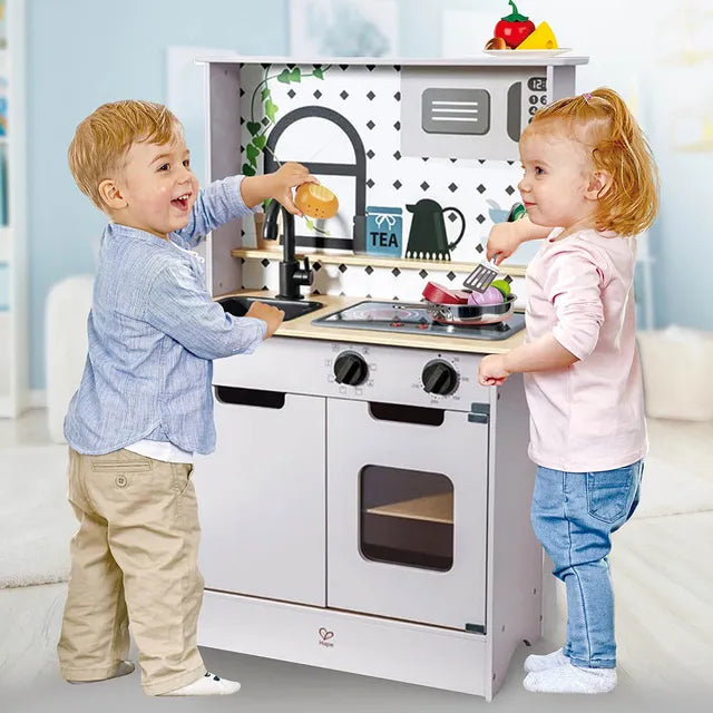 احصل على الإلهام لطهي أشهى المأكولات مع هذا المطبخ الحديث. مجهزة بموقد إلكتروني مضيء وتأثيرات صوتية واقعية للطهي وصنبور دوار ورف خشبي عملي لتخزين جميع توابلك. يمكنك البدء بالطهي على الفور باستخدام المقلاة والملعقة المتضمنة. ولإضفاء لمسة واقعية إضافية، توجد خلفية مرسومة تضم نباتًا وأكوابًا وأطباقًا وأدوات مطبخ أخرى. الآن عليك فقط العثور على مقاعد كافية لضيوفك على العشاء.