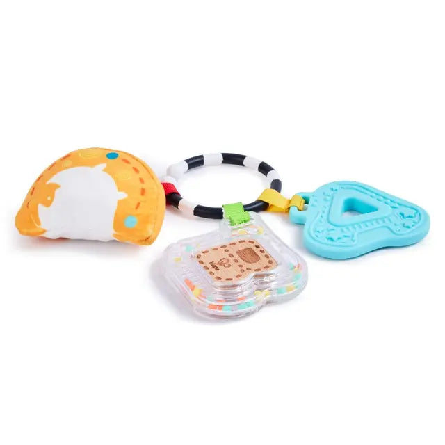 - متعة حسية محمولة للأطفال. - تتميز هذه اللعبة المحشوة، المكونة من عضاضة وخشخيشة، بملمس وألوان وأصوات جذابة.