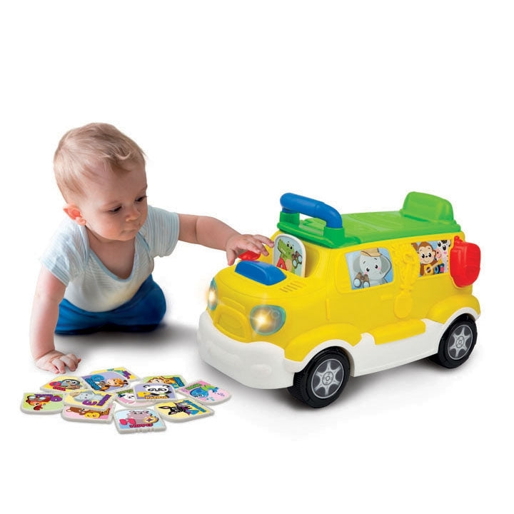 - سيستمتع الصغار بركوب شاحنة السفاري. - 13 لوحة تعلم على الوجهين مع أصدقاء حيوان لطيف. - تعرف على الحرف الأول واسم الحيوان وصوت الحيوان عند إدخال المكعبات تعليمية في الفتحة. - يساعد على تطوير المهارات الحركية الإجمالية ويبدأ التعلم المبكر. - الفئة العمرية المناسبة: من 12شهرا فما فوق.