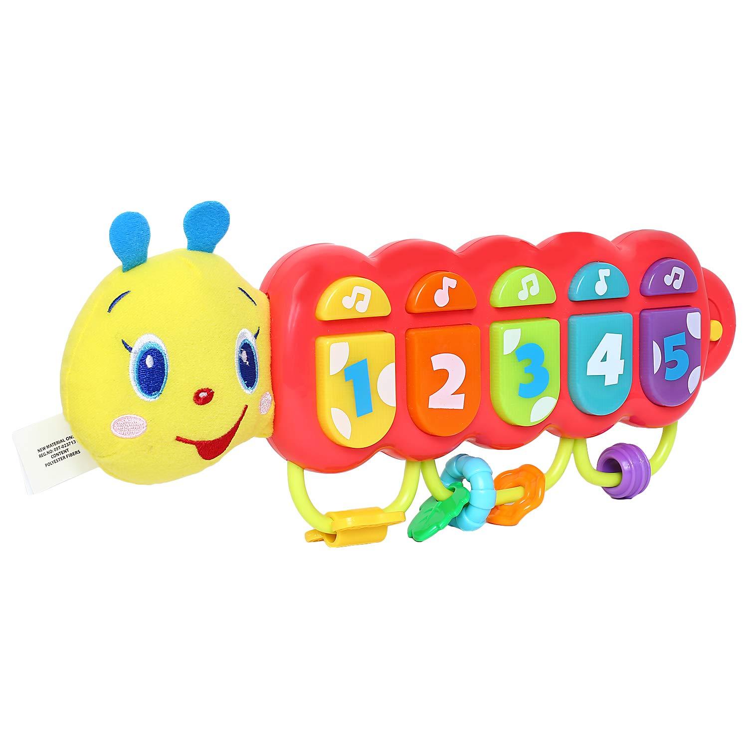 كاتربيلر مضاءة ودودة مع وضعين للعب. - الألحان والنوتات الموسيقية - رأس قماش ناعم. - سبينر بأنسجة مختلفة وحلقات منزلقة وحبة ملونة. - مرفق بسيط لنشاط سرير / عربة أطفال. - قم بإزالة اللعبة من سرير الأطفال / عربة الأطفال للعب على الأرض. - تشمل 3 بطاريات "AAA".