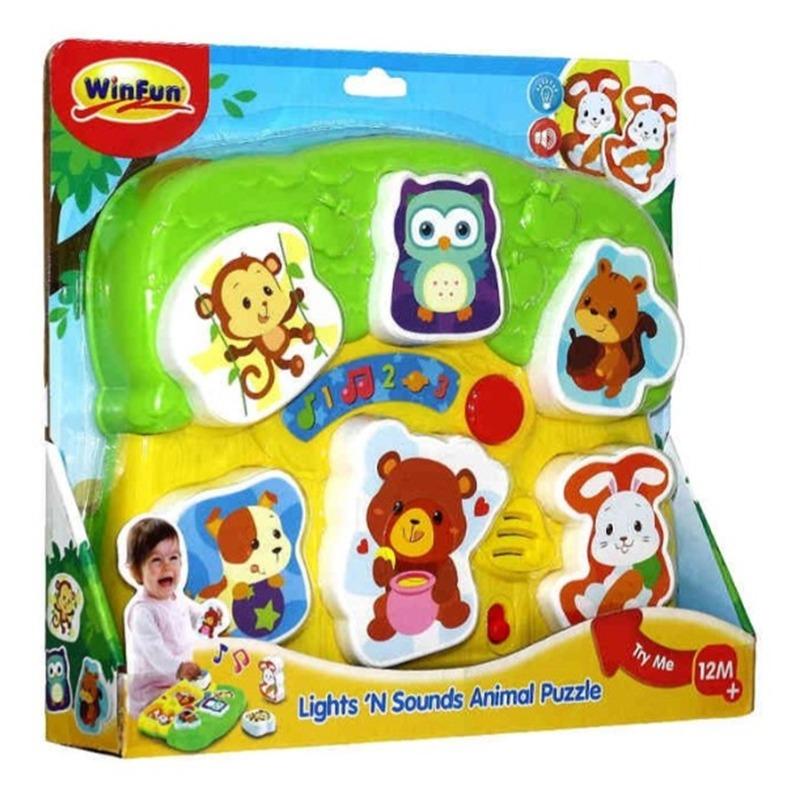 حيوانات لغز الضوء والصوت من وين فن. يمكن إزالة 6 شخصيات حيوانية لوضعها مرة أخرى. من خلال وضعهم يبدو أغنية ممتعة وأصوات. يتطلب 3 بطاريات AAA ، مع تضمين البطاريات. تشمل الحيوانات: القرد والبومة والسنجاب والكلب والدب والأرنب. أبعاد المنتج: 28 × 6 × 25.3 سم أبعاد العلبة: 56.2 × 34.93 × 26.30 سم