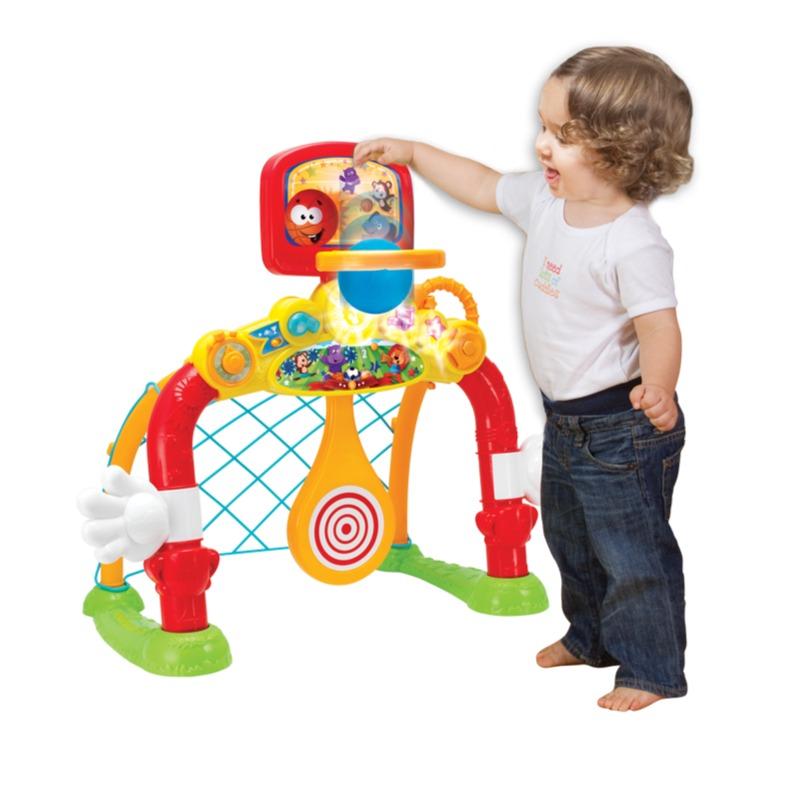 - كرة القدم وكرة السلة وكرة اليد وكرة المضرب في جهاز واحد. - وضعان للعب: وضع اللعب الحر ووضع التحدي. - 4 أزرار مضيئة بأصوات ممتعة وألحان مبهجة. - قم برمي الكرة في الطوق أو اضرب مضرب كرة المجداف في المرمى للحصول على أضواء وأصوات ممتعة. - كرة ناعمة صغيرة الحجم ومضرب كرة مجداف قابل للفصل.