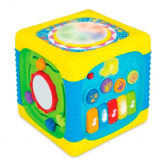- مكعب متعدد الأنشطة مع 5 مفاتيح مضيئة ولوحة طبلة وامضة. - أزرار الآلات الموسيقية وأزرار الصوت الممتعة وزر الأغاني التجريبية المضيئة. - أصوات مرحة وأصوات حيوانات وألحان مبهجة. - اضغط على مفاتيح الإضاءة الخمسة من أجل وضع التشغيل الصحيح. - اضغط على لوحة الأسطوانة لسماع أصوات الطبلة وتغيير اللون. - مرآة عاكسة ، منزلقات متذبذبة وتروس دوارة. - يتضمن نشاط فارز الأشكال 4 أشكال - مثلث ، قلب ، دائرة ، مربع. - 3 بطاريات AA متضمنة العبوة: 6 قطع / القياس الخارجي: 3.73 قدم مكعب.