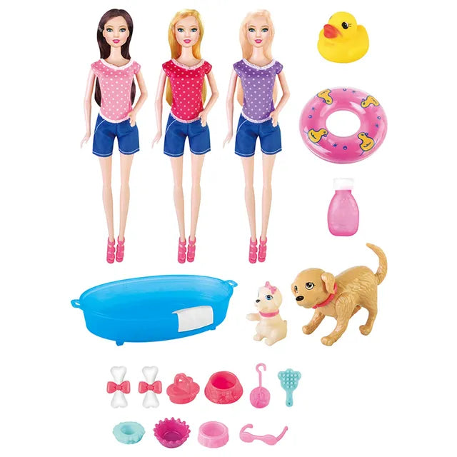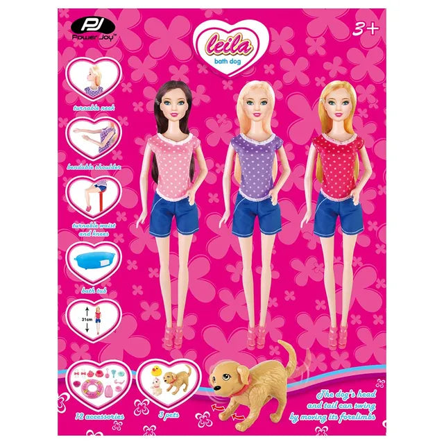 دمية الموضة الجميلة الجديدة مقاس 31 سم مع ملحقات حمام الكلب. مصنوعة من الفينيل المعتمد مع سطح أملس ومنحنيات، وغير سامة، وآمنة للعب، فساتين ملونة وجميلة بنمط جديد. دمية مفصلية بالكامل مع رقبة/خصر قابل للدوران، وركبتين/كتف قابلة للانحناء. , , استمتع بمتعة لا نهاية لها في تحميم كلبك الصغير المحبوب. يرجى ملاحظة: قد تختلف أنماط وألوان المنتج المستلم حسب التوافر،