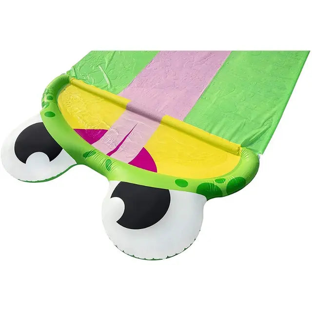 زحلاقية مائية أرضية اتش تو اوه جو شكل ضفدع 488 سم من بيست واي. - زحلاقية المسار السريع مثالية للسباقات المائية ولمرح الاطفال. - يتم تصريف المياه من خلال صمام الدخول وصمام الصرف أسفل وسادة الرش. - اطفالك سوف يستمتعون بالقفز السريع أو القفز و الانزلاق أو الاستلقاء على الزحليقة لمزيد من المرح. - الابعاد التقريبية:481 × 132 × 35 سم. - الفئة العمرية المناسبة: 3 سنوات فما فوق.