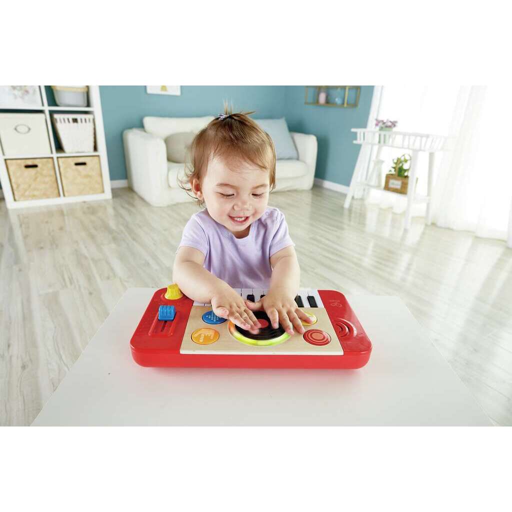 - موسيقى رائعة: دع منسق الموسيقى الصغير يعمل على ألحانه السحرية ويتعلم الأصوات خلال ساعات من اللعب التفاعلي. تتضمن ملصق تعليمات وكتيب لتسهيل البدء بالعمل. - ابدأوا الآن: لحفلة موسيقيى صغيرة في المنزل! دعي قائد الفرقة الموسيقة يعزف ألحاناً رائعة مع 18 زر بيانو. تحتوي اللعبة على برامج تتضمن أربعة آلات موسيقية وصوت قابل للتعديل للبدء بأدائكم الموسيقي الفردي لأول مرة. - الوتيرة والإيقاع: تقوم لعبة ميكس & سبين بإصدار أصوات موسيقية حقيقية. اختاروا من بين 18 صوت موسيقي وخمسة خلفيات وأربعة أصوات دي جي للتنسيق. هناك مفتاح للتحكم بسرعة ووتيرة الموسيقى أيضاً - للتطور في الطفولة المبكرة: اللعبة الممتعة تطور العديد من المهارات الأساسية المبكرة. استديو المنسق الموسيقي يعزز الإبداع وحب الموسيقى بينما يطور التنسيق بين العين واليد وحس الإيقاع. - آمن للعب: جميع منتجات هيب مصنوعة من مواد عالية الجودة من مصادر تحفظ الديمومة ومطلية بألوان غير سامة وآمنة على الأطفال.