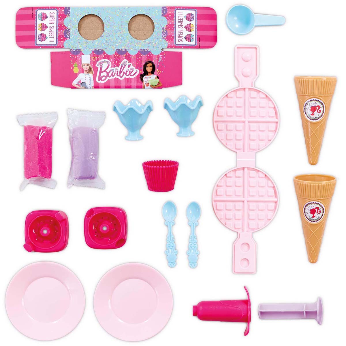 ألهمي خيالكِ وإبداعكِ مع مجموعة عجينة باربي "أستطيع أن أصبح طاهية". يمكن للطهاة المبتدئين مزج وتشكيل وتشكيل تشكيلة رائعة من الحلويات باستخدام عجينة لامعة ومجموعة متنوعة من القوالب الممتعة. يمكن للأطفال صنع دونات لامعة، وبسكويت ملون، ومغارف آيس كريم حلزونية، ثم عرض إبداعاتهم اللذيذة في أكواب الآيس كريم، وحاملات الكب كيك، والأقماع. تتضمن هذه المجموعة المكونة من 23 قطعة خمسة ألوان زاهية من العجين، وأدوات تقديم مزخرفة، ووعاء خلط عملي لسهولة التخزين. مثالية لتشجيع اللعب التظاهري، والمهارات الحركية الدقيقة، والمرح العملي، وهي مثالية للأطفال الذين يعشقون الخبز، والأعمال اليدوية، وكل ما يتعلق بباربي.