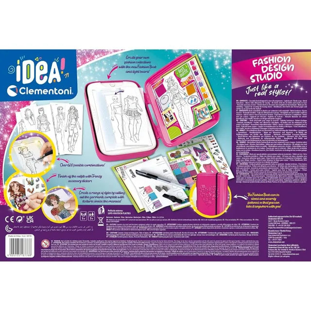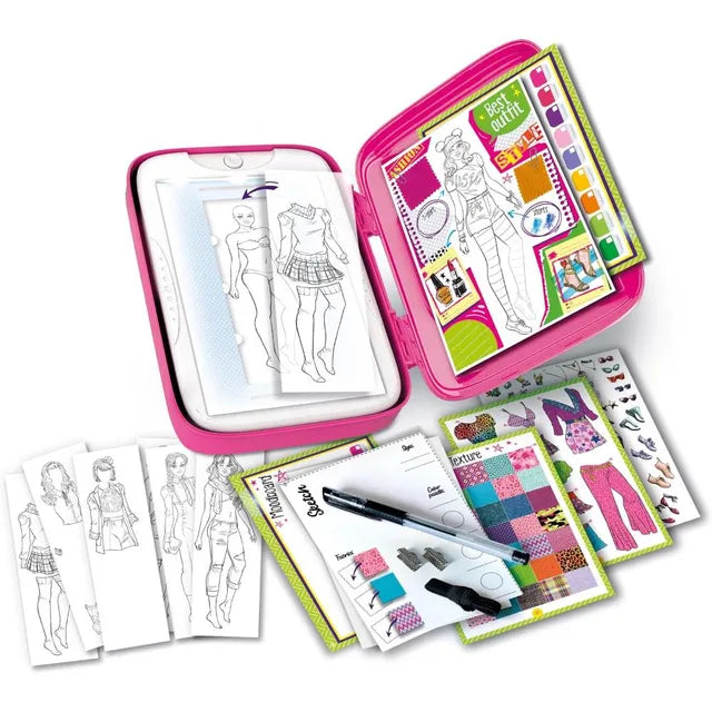 كتاب الأزياء كلمنتوني يمكنك بسهولة تصميم مجموعات حصرية. مثل استوديو الأزياء الحقيقي، يمكن لمصممي الأزياء الناشئين إنشاء اتجاهات أزياء مذهلة. بمساعدة لوحة الإضاءة الحديثة، يمكن بسهولة تتبع اقتراحات الموضة المضمنة ودمجها وإعادة تفسيرها. تشتمل المجموعة الإبداعية للأطفال على لوحة مضيئة واقتراحات أزياء للإلهام وإعادة الرسم وقلم حبر لتصميمات الأزياء الاحترافية وصندوق تخزين كتب الموضة العملي. بفضل كتاب الأزياء العملي، يمكن اصطحاب استوديو الأزياء المتنقل إلى أي مكان.