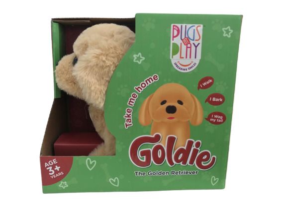 الجرو المرح جولدي يمشي وينبح ويهز ذيله .