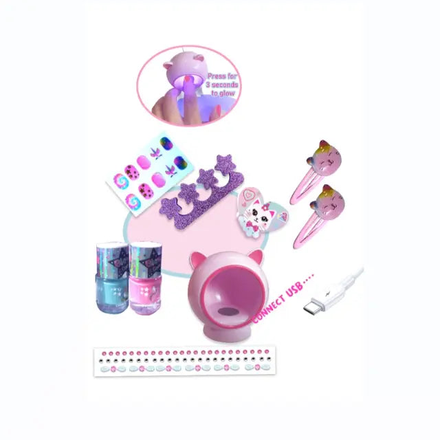 - مجموعة المكياج اللامعة هذه ضرورية لأي فتاة صغيرة. - يستمتع أطفالك الصغار بساعات من اللعب والمرح. - تزيين الأظافر بطريقة مذهلة. - يمكن للفتيات طلاء أظافرهن ووضع رقائق معدنية وملصقات عليها، وحتى إضافة الترتر للحصول على مظهر ساحر. - لا توجد مهارات مطلوبة، فقط 10 ثوانٍ لتزيين الأظافر بمظهر احترافي.