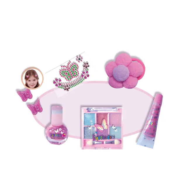 مجموعة مستحضرات تجميل للأطفال. المجموعة مصنوعة من مواد آمنة وغير سامة وتبقي الصغار منشغلين وتسليهم أثناء وقت اللعب. يمكن للأطفال المشاركة في حياة الكبار في سيناريوهات افتراضية. مجموعة اللعب والتظاهر هذه هي طريقة رائعة لمساعدة الأطفال على فهم عالمهم بشكل أفضل مع تطوير مهارات اللغة والمهارات الاجتماعية المبكرة.